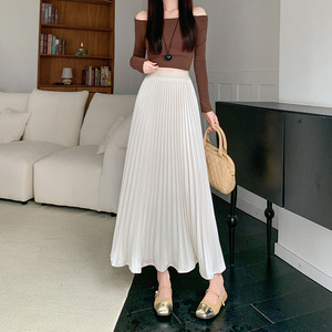 百搭高腰百褶a字半身裙女2025年新款早秋中长款显瘦冬季气质长裙