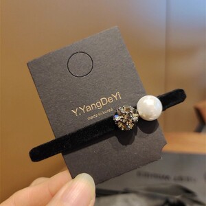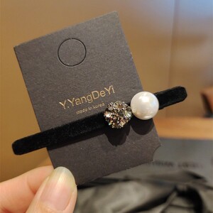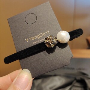 简简单单珍珠水晶赫本黑丝绒发夹高级感头饰刘海夹韩国侧边夹子女