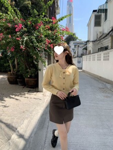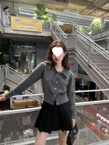 韩系甜美蝴蝶结针织开衫女秋季设计感别致毛衣打底衫洋气绝美上衣
