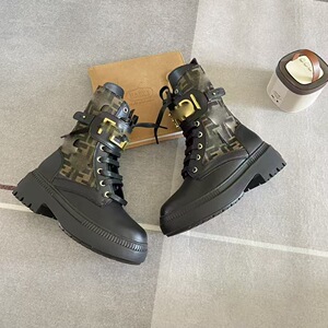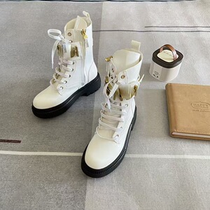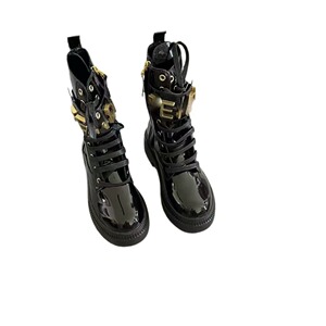 2025新款头层牛皮金属字母马丁靴F家英伦风中筒靴厚底增高骑士靴