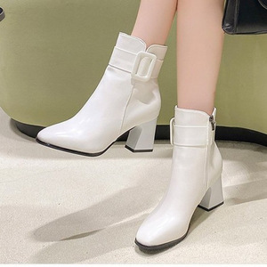 马丁靴女2025秋冬季新款英伦风尖头高跟短靴时尚皮带扣侧拉链女靴