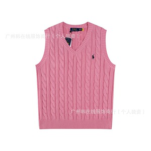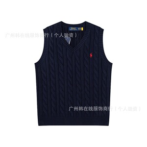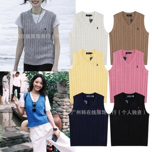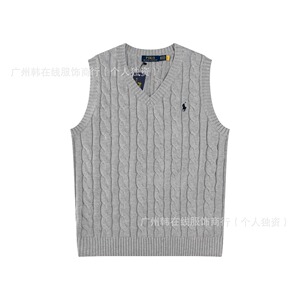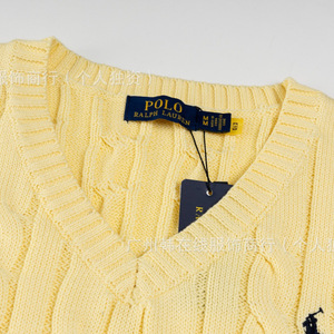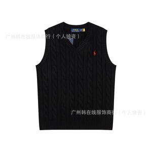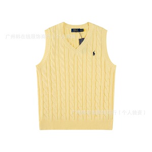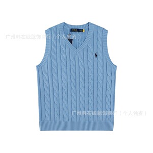 25跨境RL拉夫劳伦小标绞花V领马甲背心无袖麻花毛衣男女同款