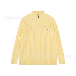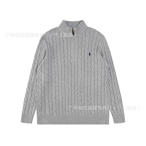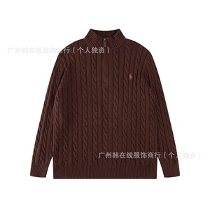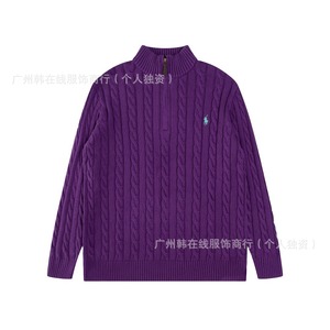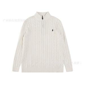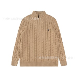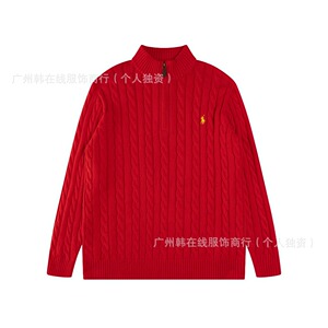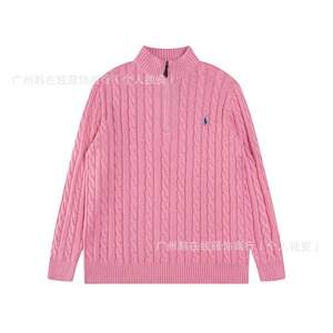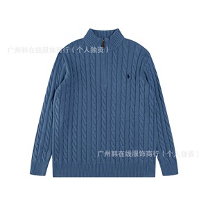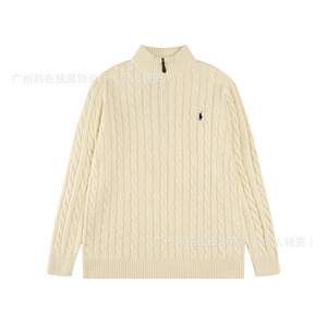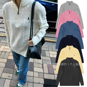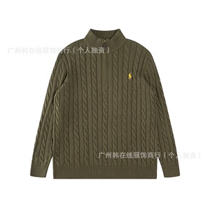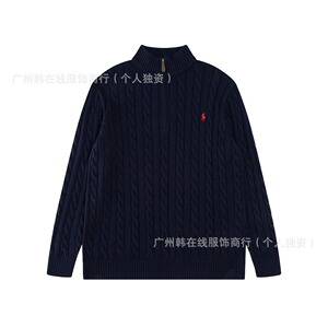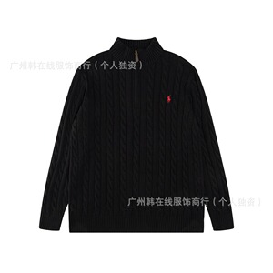 25跨境RL小马十五色经典小标刺绣logo高领套头半拉链针织绞花毛衣