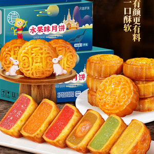 农科院广式水果味月饼多口味五仁蛋黄莲蓉迷你水果味月饼整箱批发