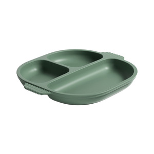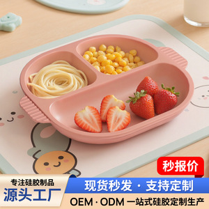 跨境食品级硅胶儿童餐盘圆形吸盘式分格餐盘宝宝自主进食防烫餐具