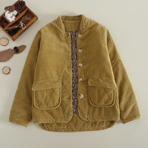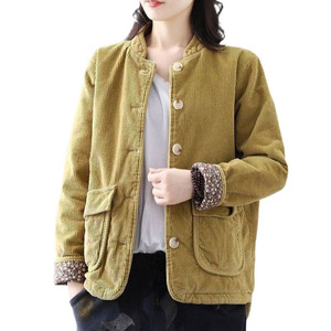 秋冬女士新款棉服灯芯绒立领复古文艺小棉袄单排扣短款外套女