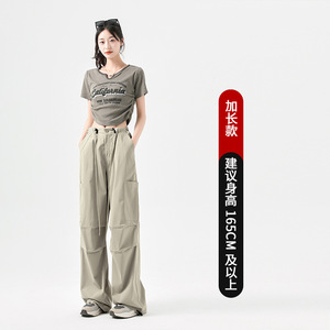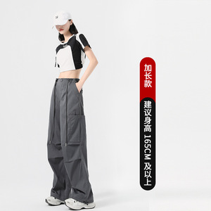 严选春秋女装高腰阔腿卫裤美式小个子酷飒工装裤女裤潮酷休闲裤子