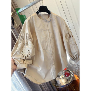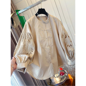 高级设计感气质法式镂空刺绣灯笼袖衬衫宽松上衣女装2025春秋新款