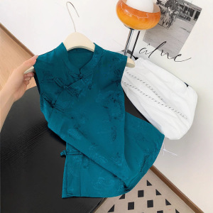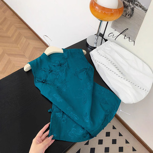 广州十三行高货爆款~提花盘扣立领无袖背心女新款高级感气质上衣