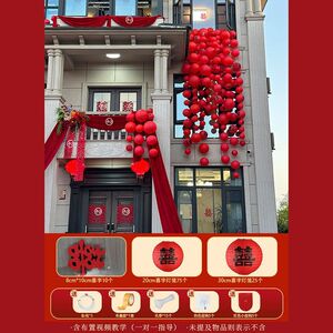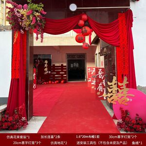 【大红纱幔+花+长条喜】院子装饰