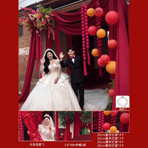 【大红纱幔+灯笼串+长条喜】不含花