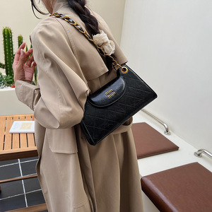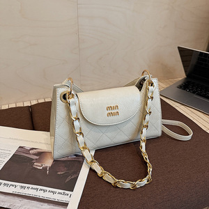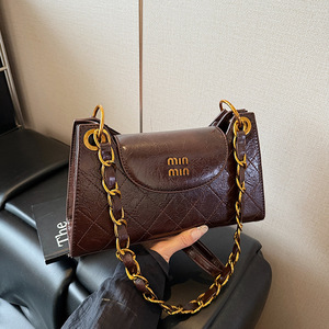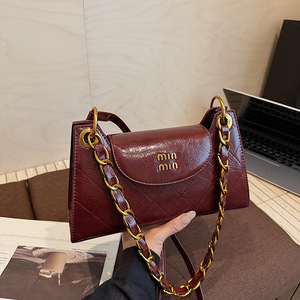 跨境新款2025链条手提包油蜡皮质感百搭单肩斜挎包时尚外出腋下包