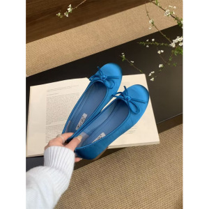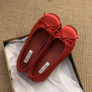 软底圆头芭蕾舞单鞋女2025春季新款绸缎面舒适平底一脚蹬奶奶鞋子