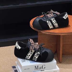 丑萌豹纹德训鞋女ins潮2025早秋新款复古拼色小众内增高休闲鞋女