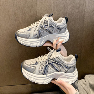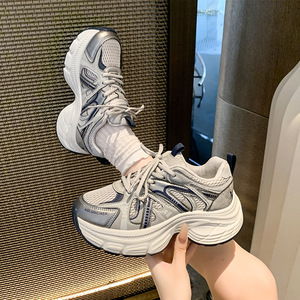 小个子厚底老爹鞋女增高7CM2025春季新款网面拼色跑步休闲运动鞋