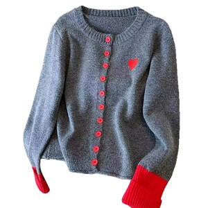 慵懒风爱心刺绣针织衫女春秋季软糯灰色毛衣开衫修身别致外套上衣