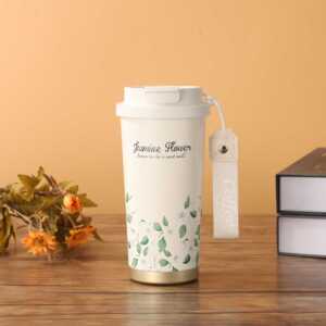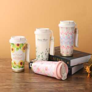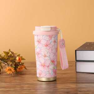 提绳水杯女生双饮水杯新款铃兰咖啡杯不锈钢保温杯高颜值带吸管杯