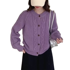 秋冬季新款韩版宽松圆领麻花针织开衫女慵懒风软糯毛衣外套女上衣