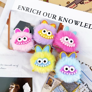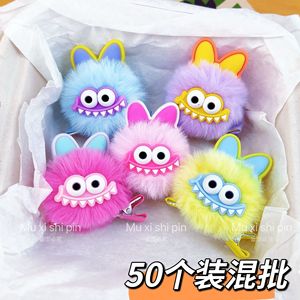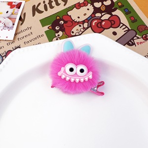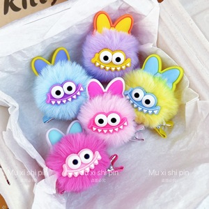 新款丑萌小怪兽毛球发夹发卡多巴胺毛球鸭嘴夹少女头饰礼品批发