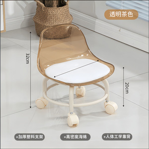 德国滑轮矮凳亚克力万向轮家用静音小凳子靠背椅儿童板凳换鞋凳子