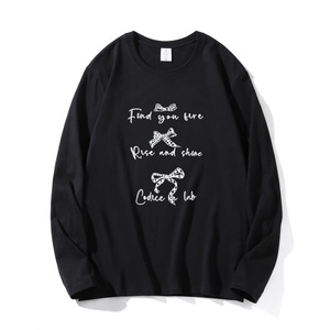 春秋季字母蝴蝶结印花设计感百搭休闲甜美风长袖上衣打底衫女