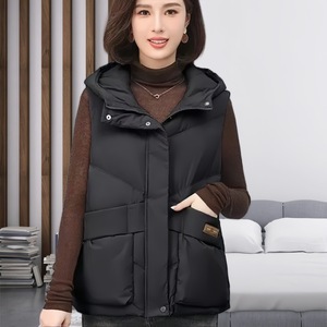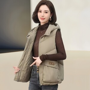 白鸭绒羽绒马甲女连帽冬季外穿2025大码加厚时尚妈妈洋气背心外套