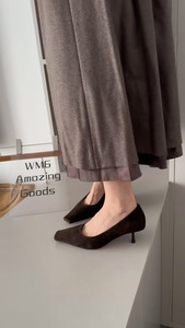 WM6欧洲站女鞋25秋时尚软羊猄皮尖头V浅口小方头细中跟款工作单鞋