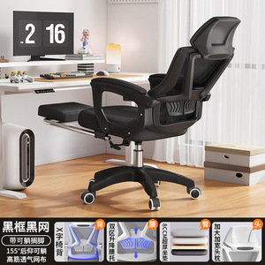 黑框黑网+135度后仰可躺+加大加宽人体工学头枕+双区升降腰托+可躺搁脚+8cm乳胶坐垫