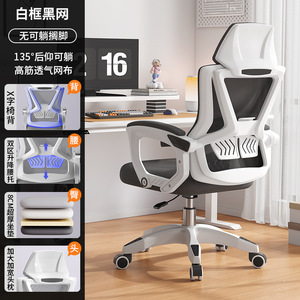 白框黑网+135度后仰可躺+加大加宽人体工学头枕+双区升降腰托