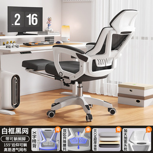 白框黑网+155度逍遥后仰可躺+加大加宽人体工学头枕+双区升降腰托+可躺搁脚+8cm乳胶坐垫+尼龙脚