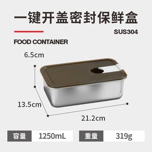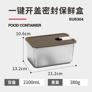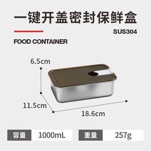 304不锈钢保鲜盒可进微波炉多规格密封盒食品级冰箱收纳盒跨境