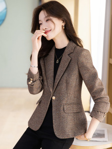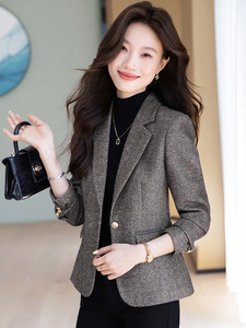 西装外套女2025新款春秋高级感修身显瘦休闲气质西服毛呢复古上衣