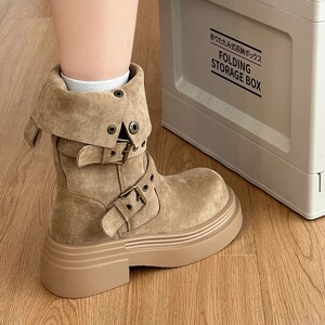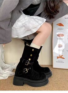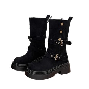 2025新款马丁靴女美式百搭中筒靴秋季时尚两穿6cm增高厚底时装靴