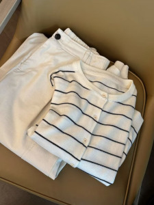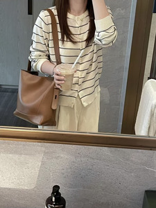 百搭宽松韩系毛衣圆领条纹针织衫外套女秋款显瘦品质含羊毛上衣服