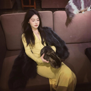 【现货】法式长袖针织连衣裙女收腰显瘦内搭长裙独特漂亮掐腰裙子