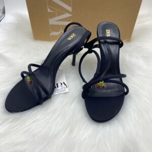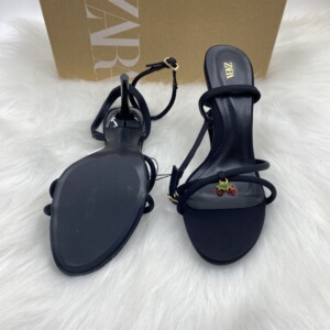 ZA女鞋2025夏季上新黑色绑带水钻樱桃吊坠高跟外穿透气休闲凉鞋
