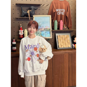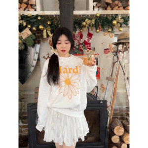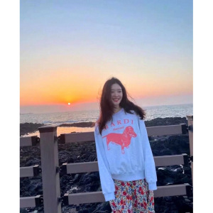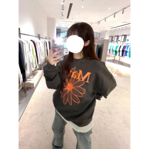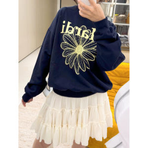 韩国潮牌卫衣小雏菊腊肠狗印花刺绣金高银同款纯棉圆领印花上衣女