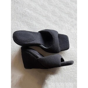 时尚毛绒绒露趾一字拖鞋女休闲圆嘟嘟方头坡跟高跟棉拖鞋