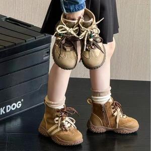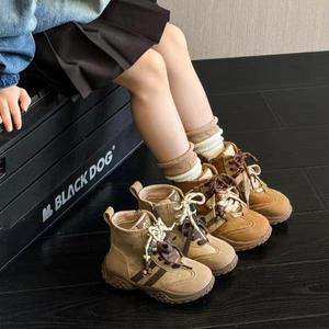 2025年秋季时尚双绑带儿童运动款短靴潮流洋气女童德训款时装靴