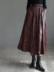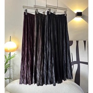 2025秋季新款复古褶皱高腰半身裙女皮裙子长款不规则百褶a字裙潮