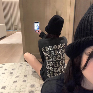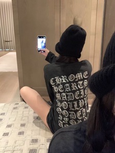 2025早秋新款炒色梵文烫钻长袖T恤女休闲宽松慵懒风小众时尚上衣