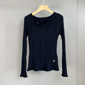 南油篙品25秋冬新款LP羊毛V领针织坑条时尚舒适百搭长袖针织上衣