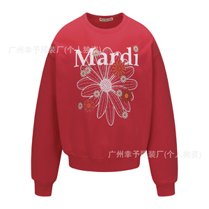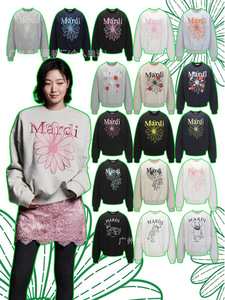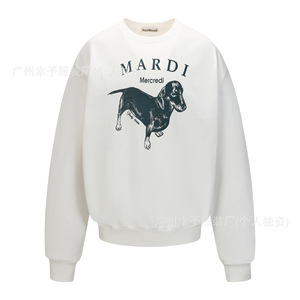 韩国Mardi卫衣赵露思同款小雏菊腊肠狗女秋冬刺绣印花套头圆领外