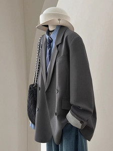 灰色西装外套女2025新款开春休闲气质名媛高级设计感小众超火西服