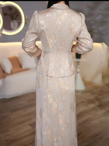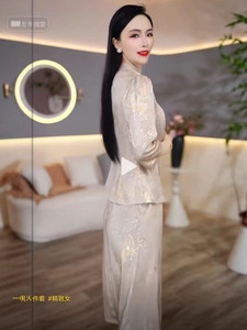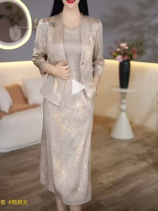 气质国风复古套装髙级感七分袖醋酸提花西装外套高品质两件套新款