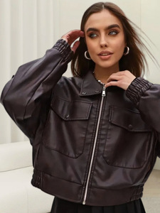 复古港风翻领长袖夹克外套女2025春夏新款个性大口袋时尚开衫皮衣