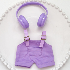 17cm一二三代l拉布布娃衣Labubu可爱背带裤耳机套装坐坐派对潮服