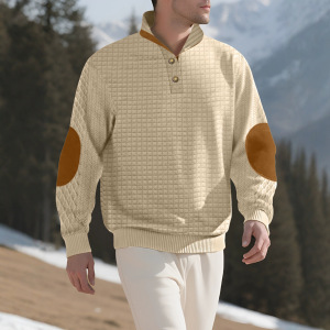 欧美跨境TEMU轻熟休闲运动男提花小方格立领长袖套头系扣户外卫衣