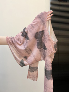 网纱短款露腰上衣辣妹装微透修身显瘦防晒罩衫大领口露肩T恤