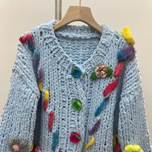 秋冬新款立体花朵长袖加厚粗针针织开衫慵懒风宽松毛衣外套潮2025